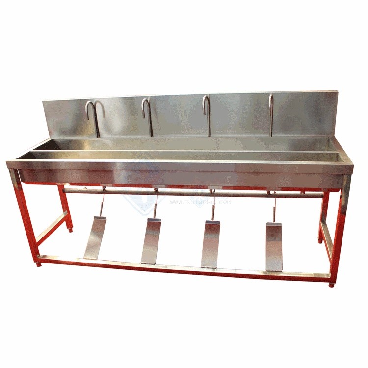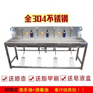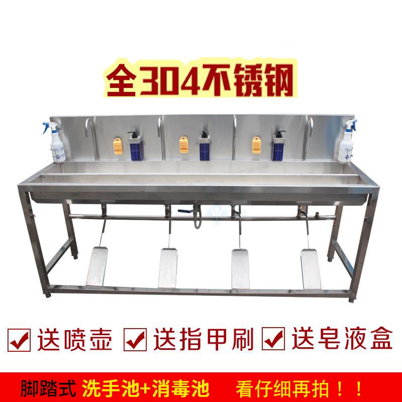 脚踏式洗手消毒槽,广泛适用于食品厂、学校、医院等场所。脚踏式免接触开关,防止手部的交叉污染。前面是放置消毒液的浅水槽,后面是带水龙头的洗手槽。全304食品级不锈钢,可耐消毒液的腐蚀性,不生锈。