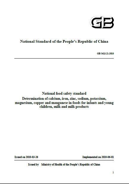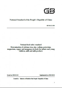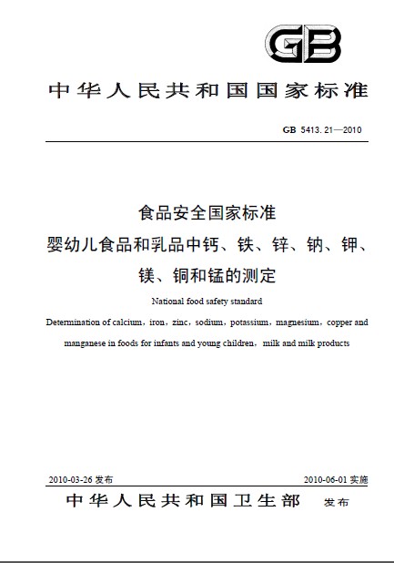 GB 5413.21-2010 婴幼儿食品和乳品中钙、铁、锌、钠、钾、镁、铜和锰的测定 英文版 已有译文已打五折