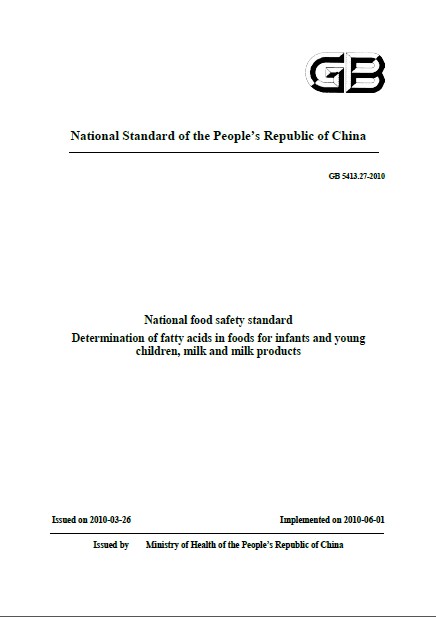 GB 5413.27-2010 婴幼儿食品和乳品中脂肪酸的测定 英文版 已有译文已打五折