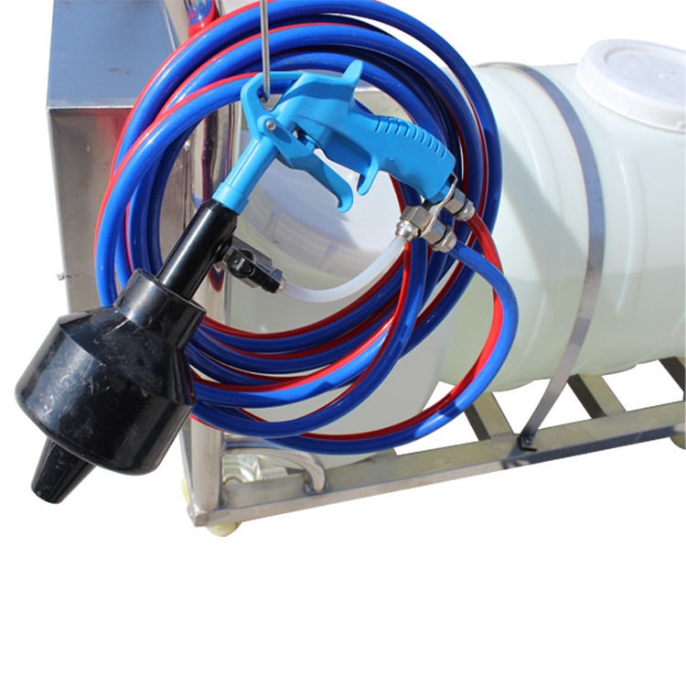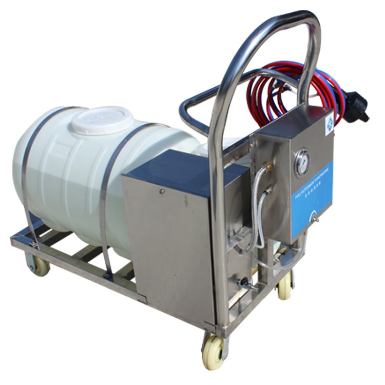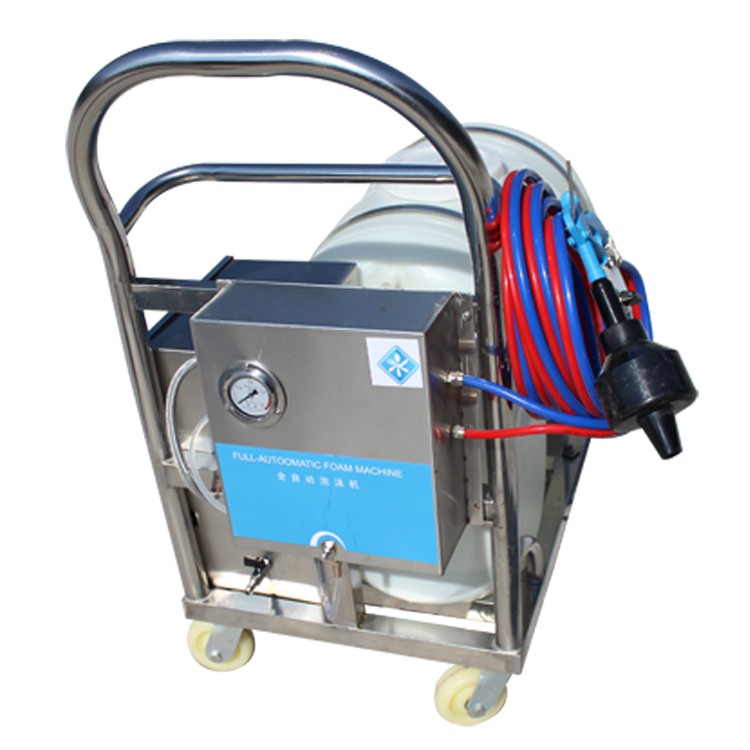 本设备为食品、药品行业对设备、环境进行清洗消毒的专用设备。水箱和清洁剂分开通路,根据需要泡沫量的多少,可以手动调节水域清洁剂的配比。用含消毒剂的溶液,可以同时起到消毒的作用。