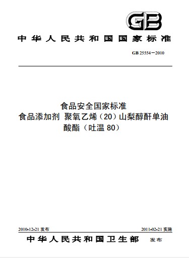GB 25554-2010 聚氧乙烯(20)山梨醇酐单油 酸酯(吐温 80)英文版 已有译文已打五折