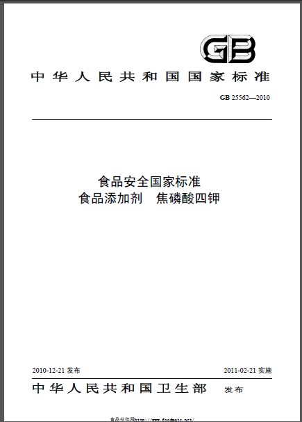 GB 25562-2010 食品安全国家标准 食品添加剂 焦磷酸四钾 英文版 已有译文已打五折