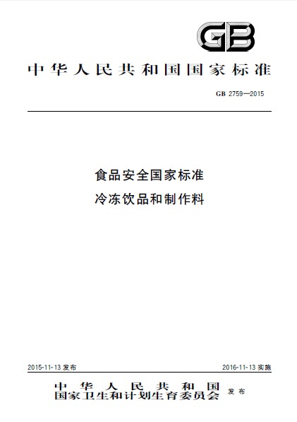 GB 2759-2015 冷冻饮品和制作料 英文版 已有译文已打五折