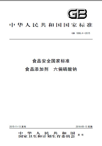 GB 1886.4-2015 食品安全国家标准 食品添加剂 六偏磷酸钠 英文版 已有译文已打五折
