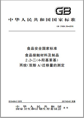 GB 31604.10-2016 2,2-二(4-羟基苯基)丙烷(双酚A)迁移量的测定 英文版 已有译文已打五折