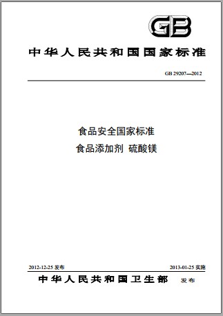 GB 29207-2012 食品安全国家标准 食品添加剂 硫酸镁 英文版本 已有译文已打五折