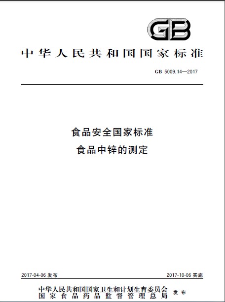 GB 5009.14-2017 食品中锌的测定 英文版 已有译文已打五折
