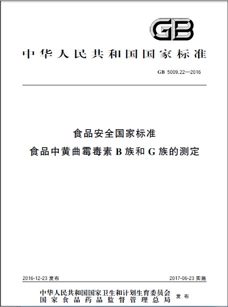 GB 5009.22-2016 食品安全国家标准 食品中黄曲霉毒素B族和G族的测定 英文版 已有译文已打五折