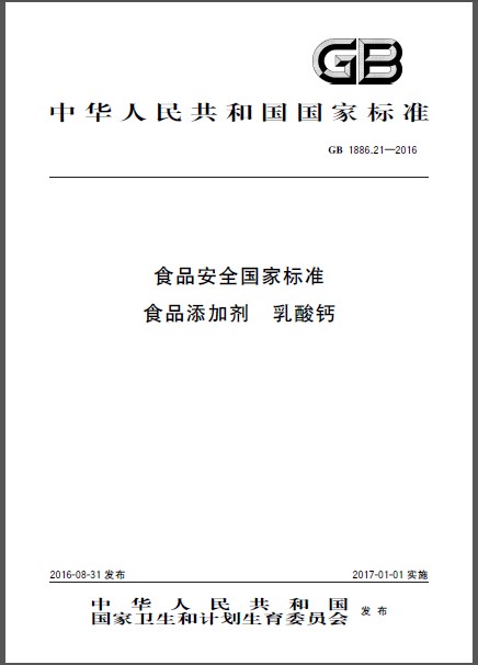 GB 1886.21-2016 食品安全国家标准 食品添加剂 乳酸钙 英文版 已有译文已打五折