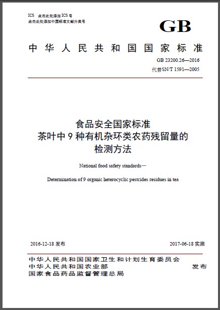 GB 23200.26-2016 食品安全国家标准 茶叶中9种有机杂环类农药残留量的检测方法 英文版 需联系翻译