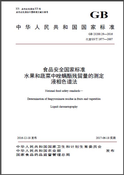 GB 23200.29-2016 水果和蔬菜中唑螨酯残留量的测定 液相色谱法 英文版 需联系翻译