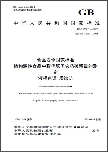 GB 23200.35-2016 植物源性食品中取代脲类农药残留量的测定 液相色谱-质谱法 英文版 需联系翻译