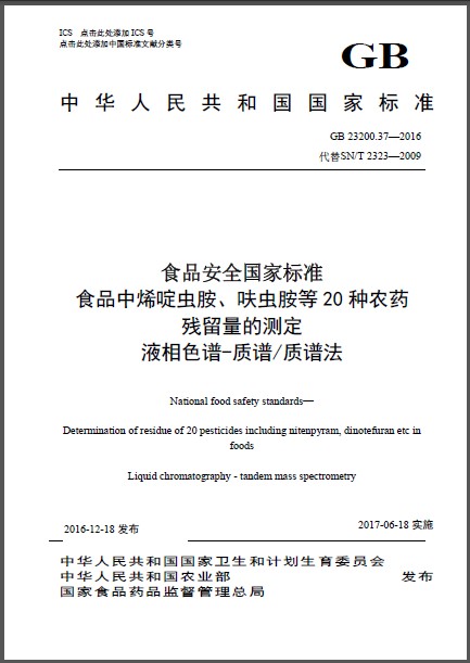 GB 23200.37-2016 食品中烯啶虫、胺呋虫胺等20种农药残留量的测定 英文版 需联系翻译