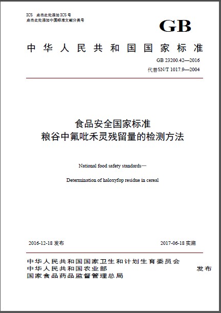 GB 23200.42-2016 食品安全国家标准 粮谷中氟吡禾灵残留量的检测方法 英文版 需联系翻译
