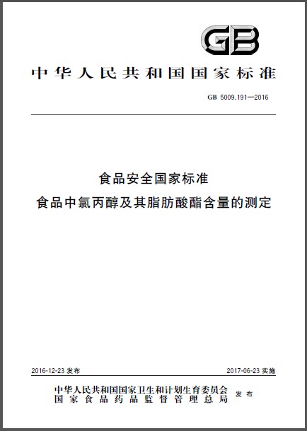 GB 5009.191-2016 食品中氯丙醇及其脂肪酸酯含量的测定 英文版 已有译文已打五折