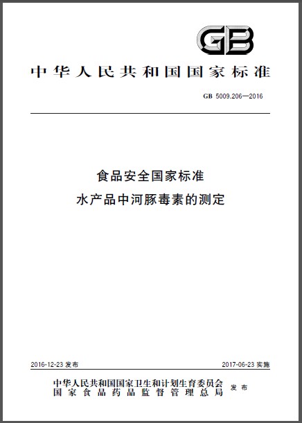GB 5009.206-2016 食品安全国家标准 水产品中河豚毒素的测定 英文版 需联系翻译