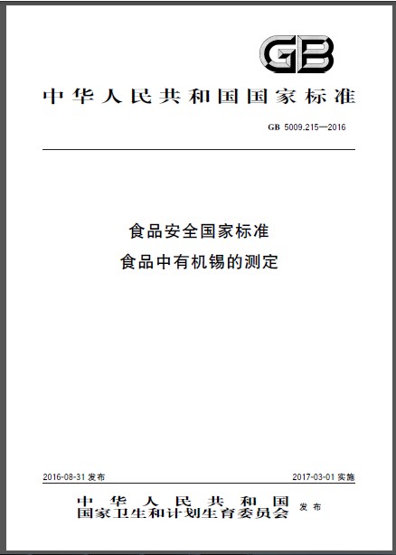 GB5009.215-2016 食品安全国家标准 食品中有机锡的测定 英文版 需联系翻译