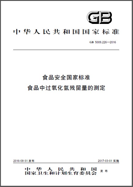 GB 5009.226-2016食品安全国家标准 食品中过氧化氢残留量的测定 英文版 需联系翻译