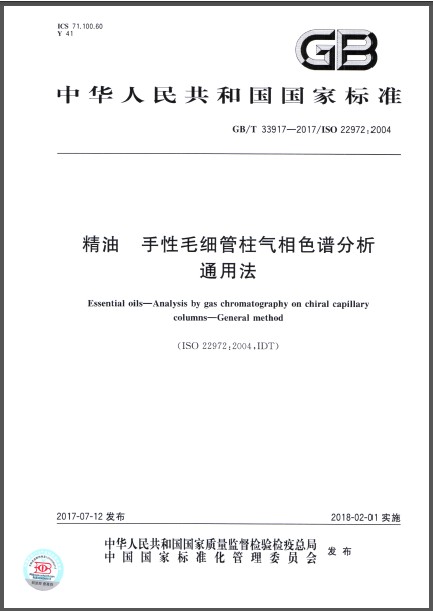 GB/T 33917-2017 精油 手性毛细管柱气相色谱分析 通用法 英文版 需联系翻译