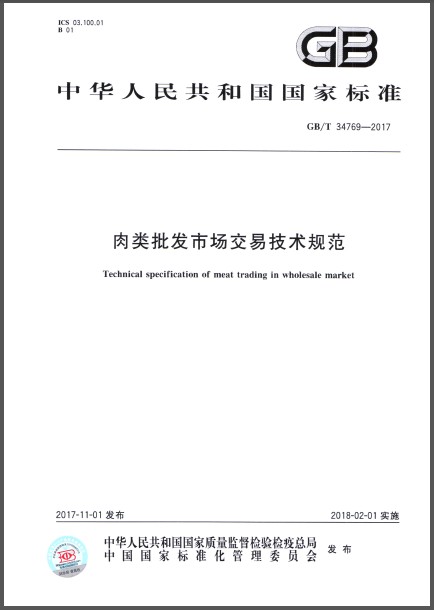 GB/T 34769-2017 肉类批发市场交易技术规范 英文版 需联系翻译