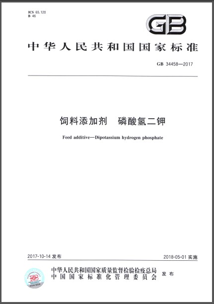 GB 34458-2017 饲料添加剂 磷酸氢二钾 英文版 需联系翻译