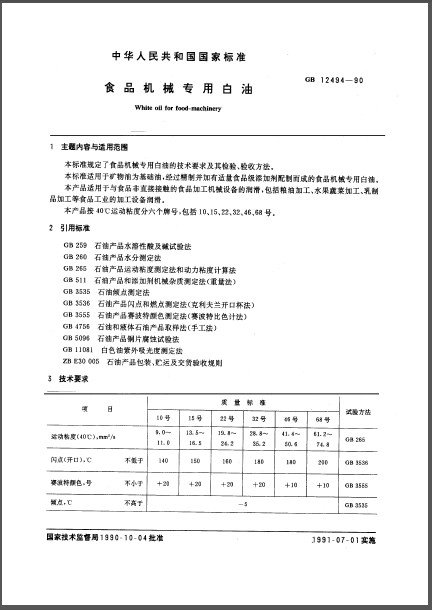 GB/T 12494-1990 食品机械专用白油 英文版 需联系翻译