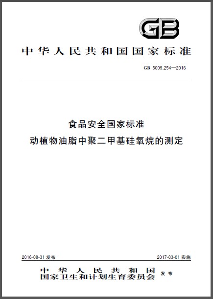 GB 5009.254-2016 食品安全国家标准 动植物油脂中二甲基硅氧烷的测定 英文版需联系翻译