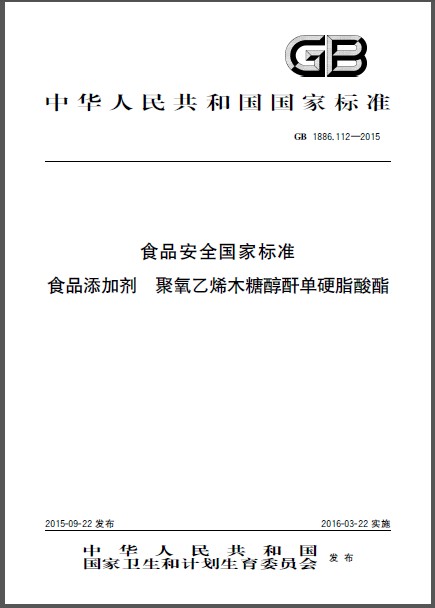 GB 1886.112-2015 食品安全国家标准 食品添加剂 聚氧乙烯木糖醇酐单硬脂酸酯 英文版需联系翻译