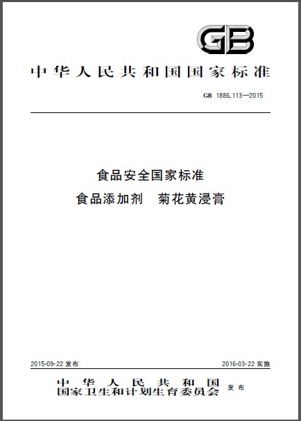 GB 1886.113-2015 食品安全国家标准 食品添加剂 菊花黄浸膏 英文版 需联系翻译