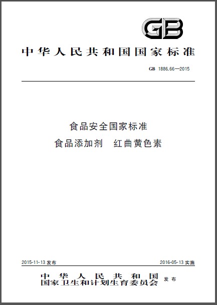 GB 1886.66-2015 食品安全国家标准 食品添加剂 红曲黄色素 英文版 需联系翻译