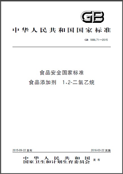 GB 1886.71-2015 食品安全国家标准 食品添加剂 1,2-二氯乙烷 英文版 需联系翻译