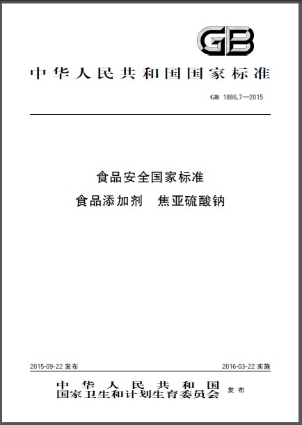 GB 1886.7-2015 食品安全国家标准 食品添加剂 焦亚硫酸钠 英文版 需联系翻译