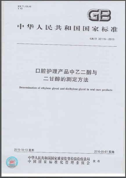 GB/T 32115-2015 口腔护理产品中乙二醇与二甘醇的测定方法 英文版 需联系翻译