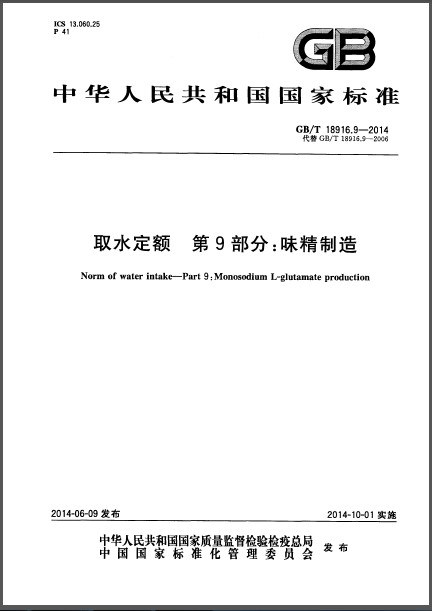 GB/T 18916.9-2014 取水定额 第9部分:味精制造 英文版 需联系翻译