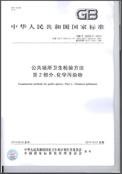 GB/T 18204.2-2014 公共场所卫生检验方法 第2部分:化学污染物 英文版 需联系翻译