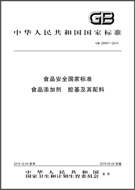 GB 29987-2014 食品安全国家标准 食品添加剂 胶基及其配料 英文版 需联系翻译