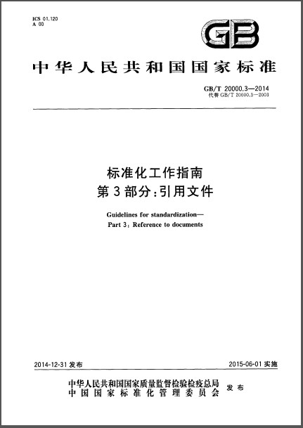 GB/T 20000.3-2014 标准化工作指南 第3部分:引用文件 英文版 需联系翻译
