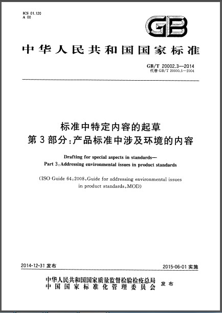GB/T 20002.3-2014 标准中特定内容的起草 第3部分:产品标准中涉及环境的内容 英文版 需联系翻译