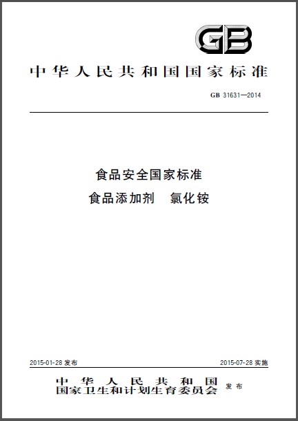 GB 31631-2014 食品安全国家标准 食品添加剂 氯化铵 英文版 需联系翻译