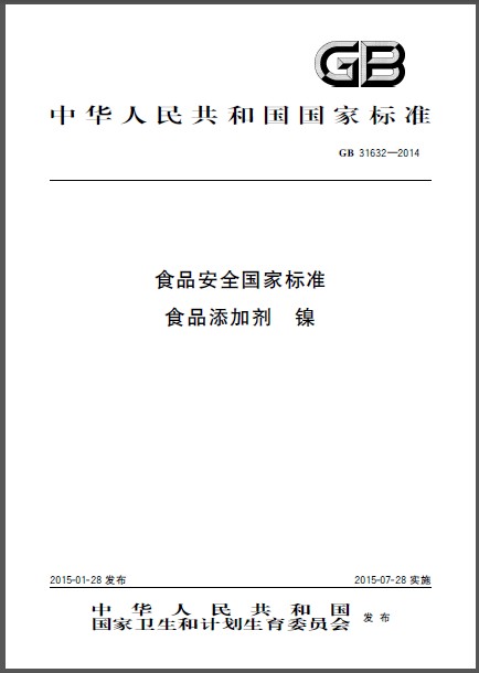 GB 31632-2014 食品安全国家标准 食品添加剂 镍 英文版 需联系翻译