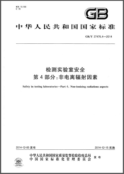 GB/T 27476.4-2014 检测实验室安全 第4部分:非电离辐射因素 英文版 需联系翻译