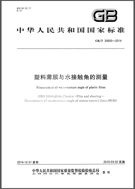 GB/T 30693-2014 塑料薄膜与水接触角的测量 英文版 需联系翻译