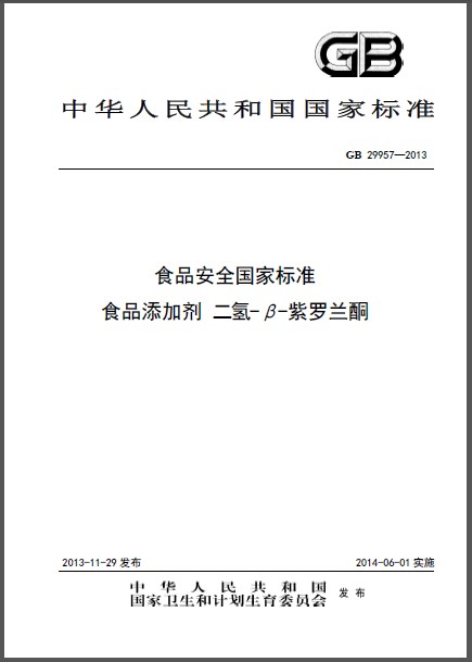 GB 29957-2013 食品安全国家标准 食品添加剂 二氢-β-紫罗兰酮 英文版 需联系翻译