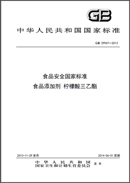 GB 29967-2013 食品添加剂 柠檬酸三乙酯 英文版 需联系翻译