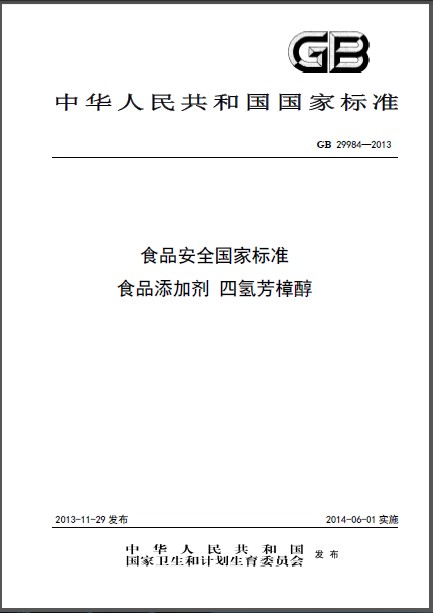 GB 29984-2013 食品添加剂 四氢芳樟醇 英文版 需联系翻译