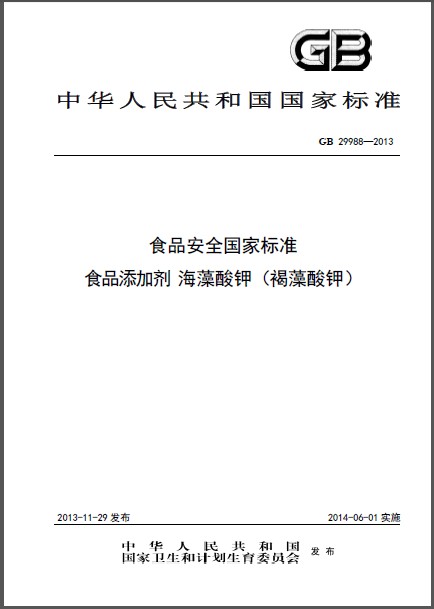 GB 29988-2013 食品添加剂 海藻酸钾(褐藻酸钾) 英文版 需联系翻译
