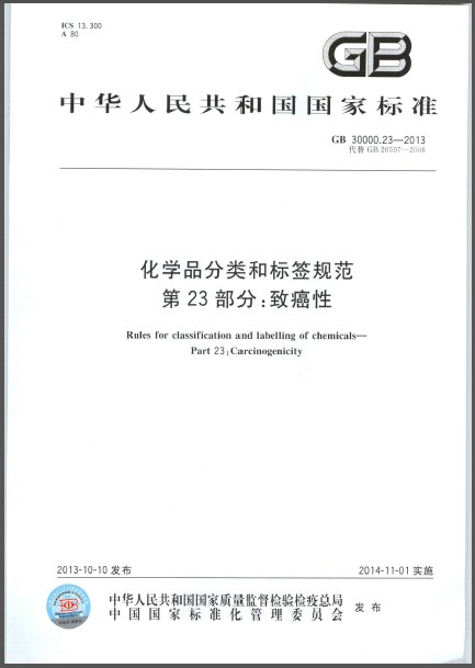 GB 30000.23-2013 化学品分类和标签规范 第23部分:致癌性 英文版 需联系翻译