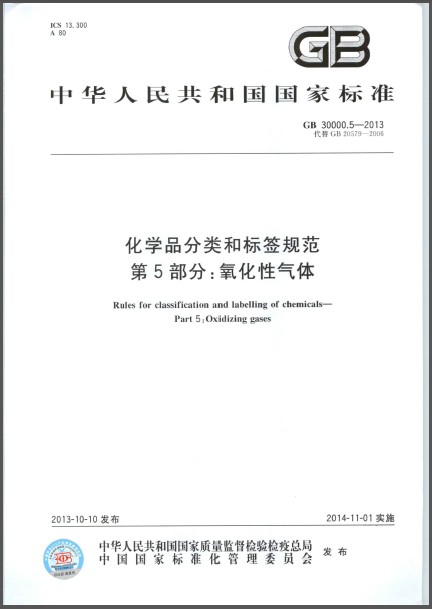 GB 30000.5-2013 化学品分类和标签规范 第5部分:氧化性气体 英文版 需联系翻译