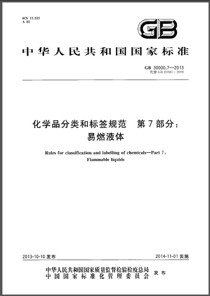 GB 30000.7-2013 化学品分类和标签规范 第7部分:易燃液体 英文版 需联系翻译