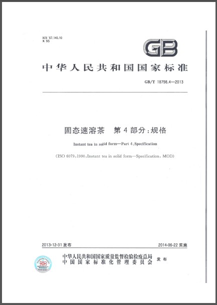 GB/T 18798.4-2013 固态速溶茶 第4部分:规格 英文版 需联系翻译